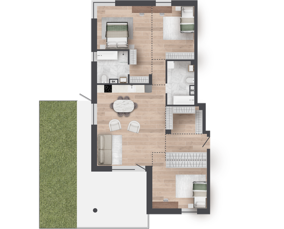 • Террасы-участки на 1 этаже от 44 до 62 м²