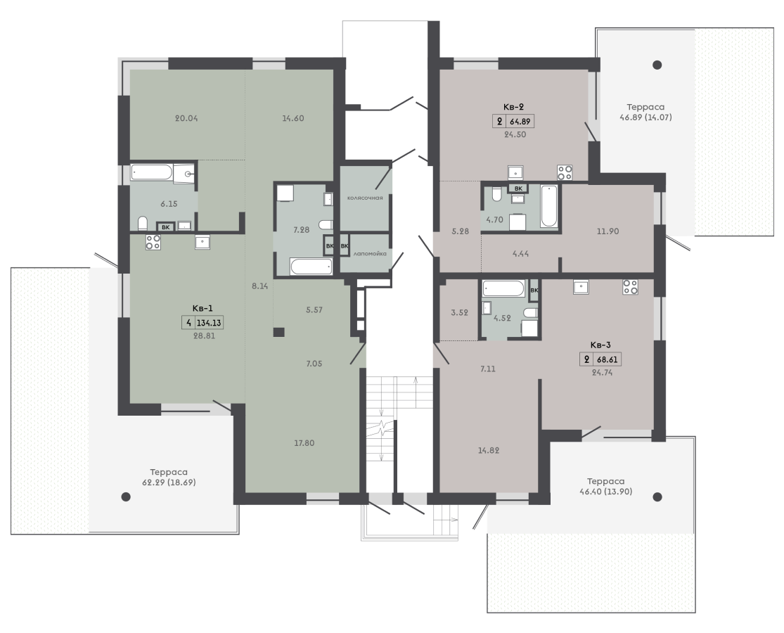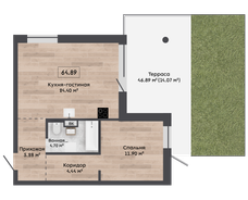 2-комнатная2-комнатная 64.89 м2 1 этаж