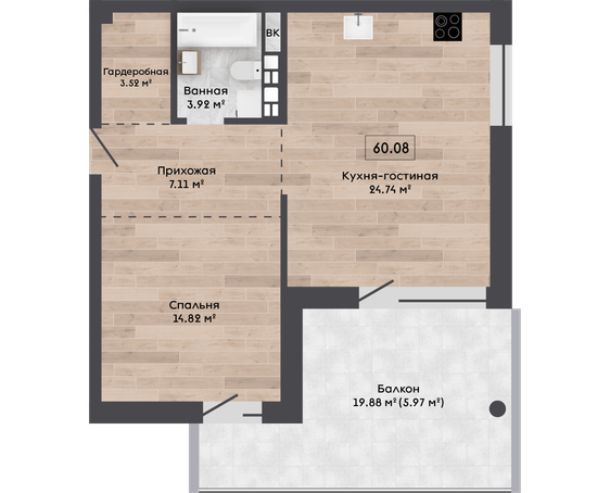 | 60,08 м² Площадь квартиры | 3 м Высота потолков | 19 м² Площадь балкона |