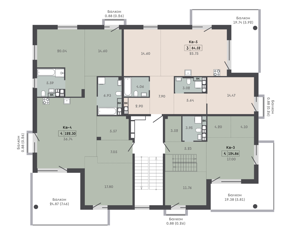3-комнатная3-комнатная 84.52 м2 2 этаж