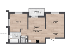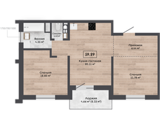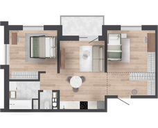 3-комнатная3-комнатная 59.29 м2 2 этаж