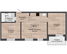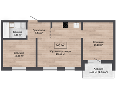3-комнатная3-комнатная 58.47 м2 2 этаж