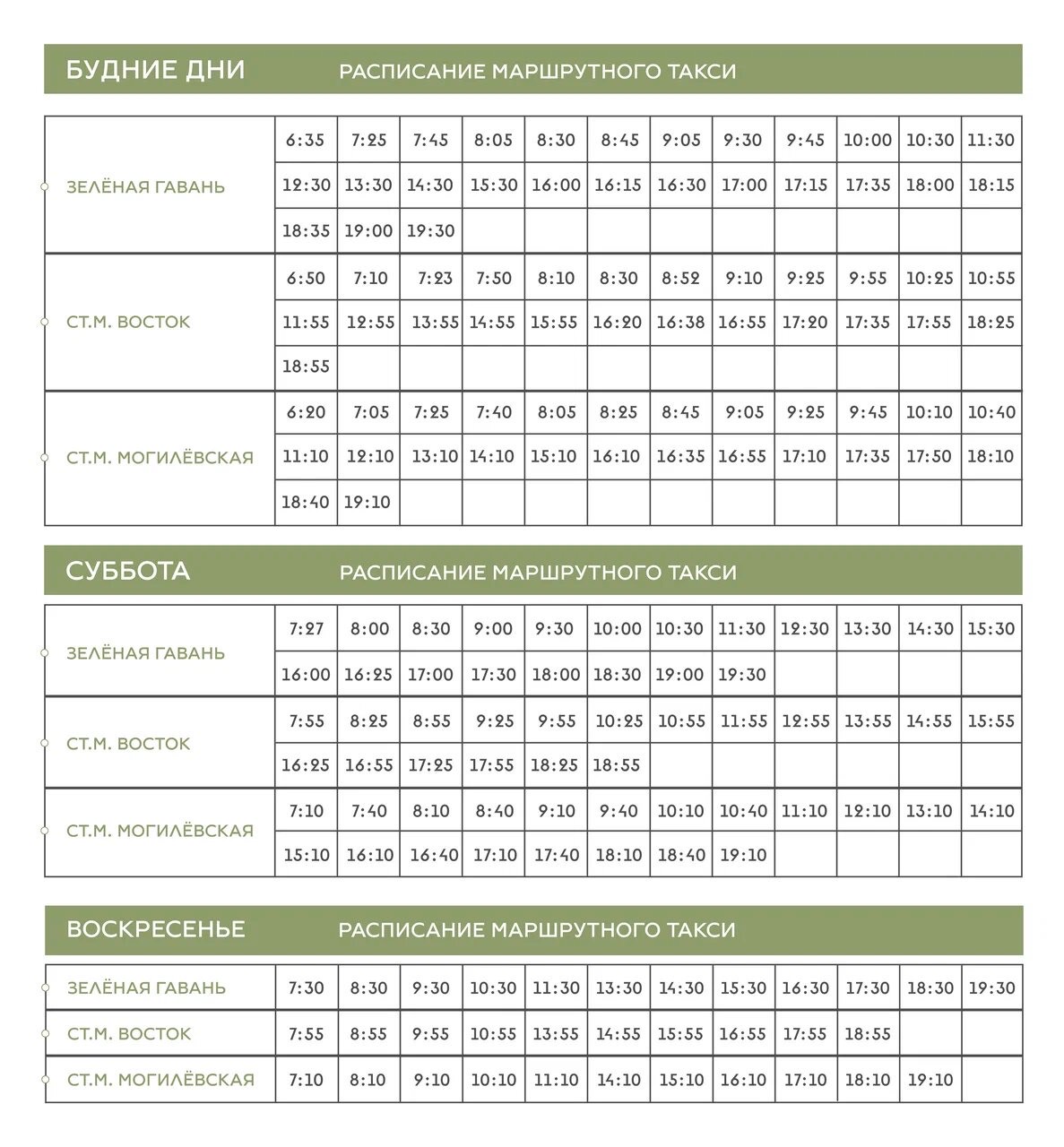 Расписание маршрутного такси с 07.02.2026